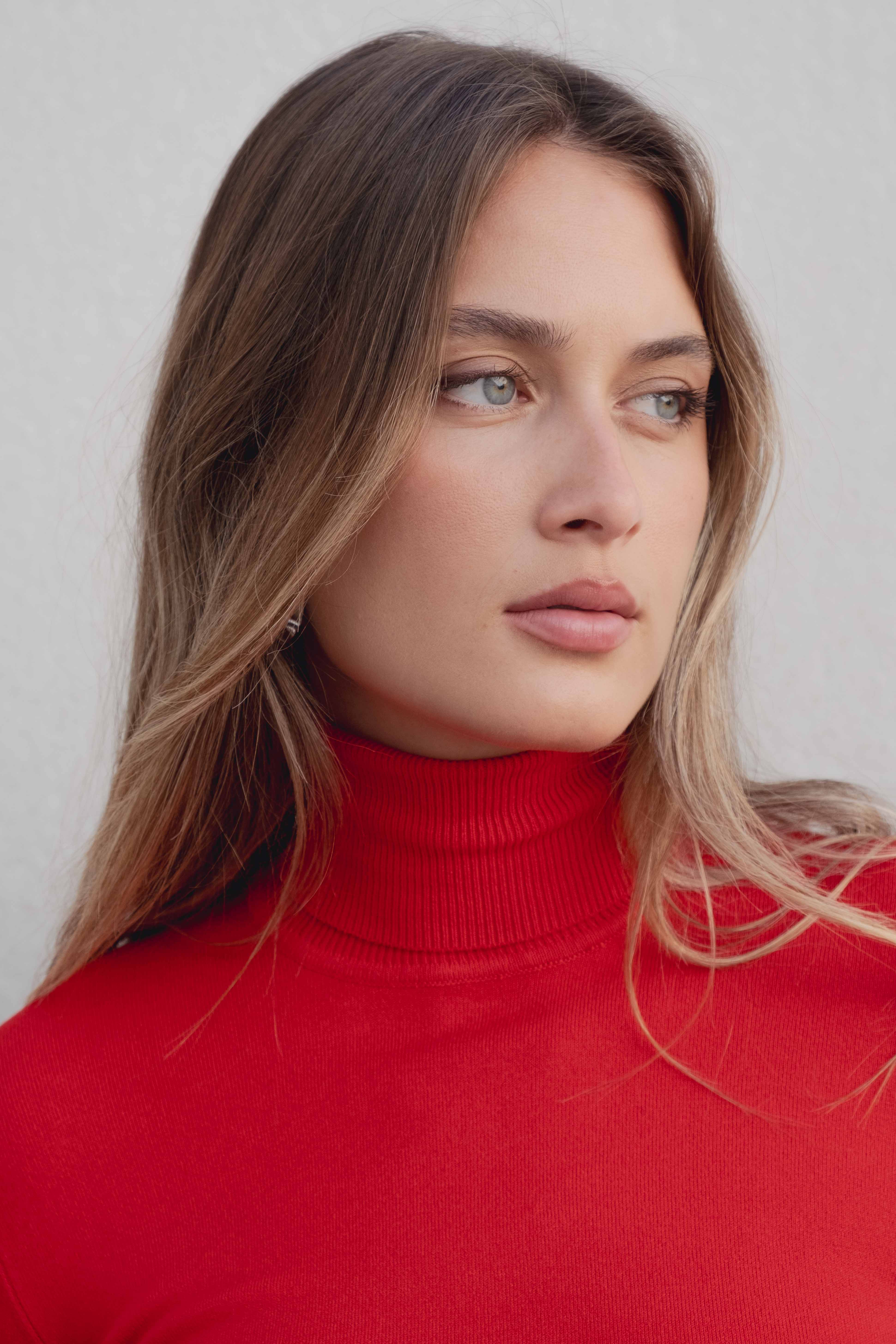 Jersey con cuello subido y manga larga acabada con pequeña abertura. Acabados en rib.