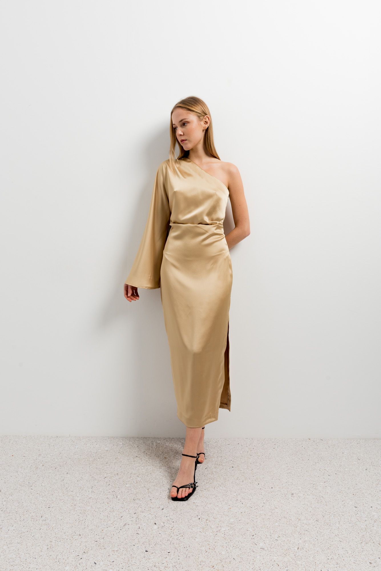 • VESTIDO MIDI ASIMETRICO