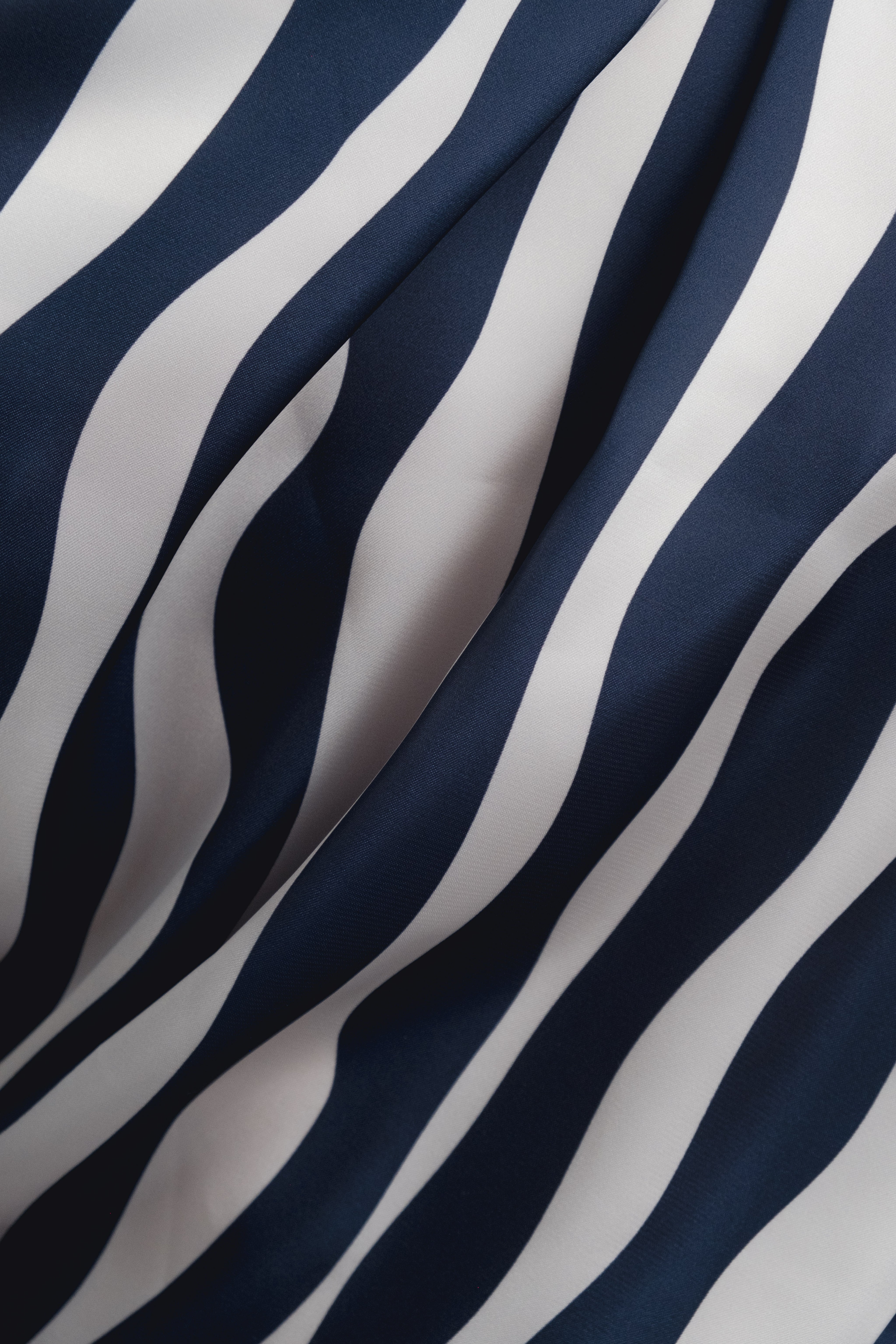 Top de escote asimétrico con manga sisa. Detalle de estampación de rayas a contraste. Bajo asimétrico.